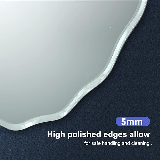 • ✨Unique Frameless Beveled Mirror: The irregular oval shape of this hanging mirror adds an eye-catching dimension to any living room decor. This irregular wall-mounted mirror easily fits into multiple design motifs like modern or vintage bathrooms, bedrooms, hallways and kitchens