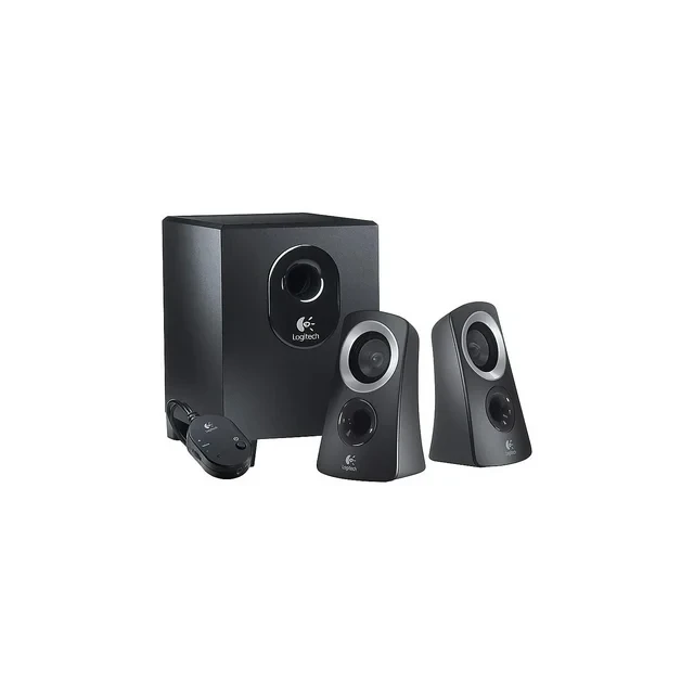Say goodbye to tiny computer speakers and dull sound. With the Logitech Speaker System Z313, it's easy to have the big listening experience you've been missing. The convenient control pod puts volume control at your fingertips. 25 watts (RMS) of power fills your room with dynamically rich and balanced music. The compact subwoofer fits in tight spaces, such as under your desk, producing deep bass you can feel. And setup is a snap. Just connect the system to your computer and you're done.